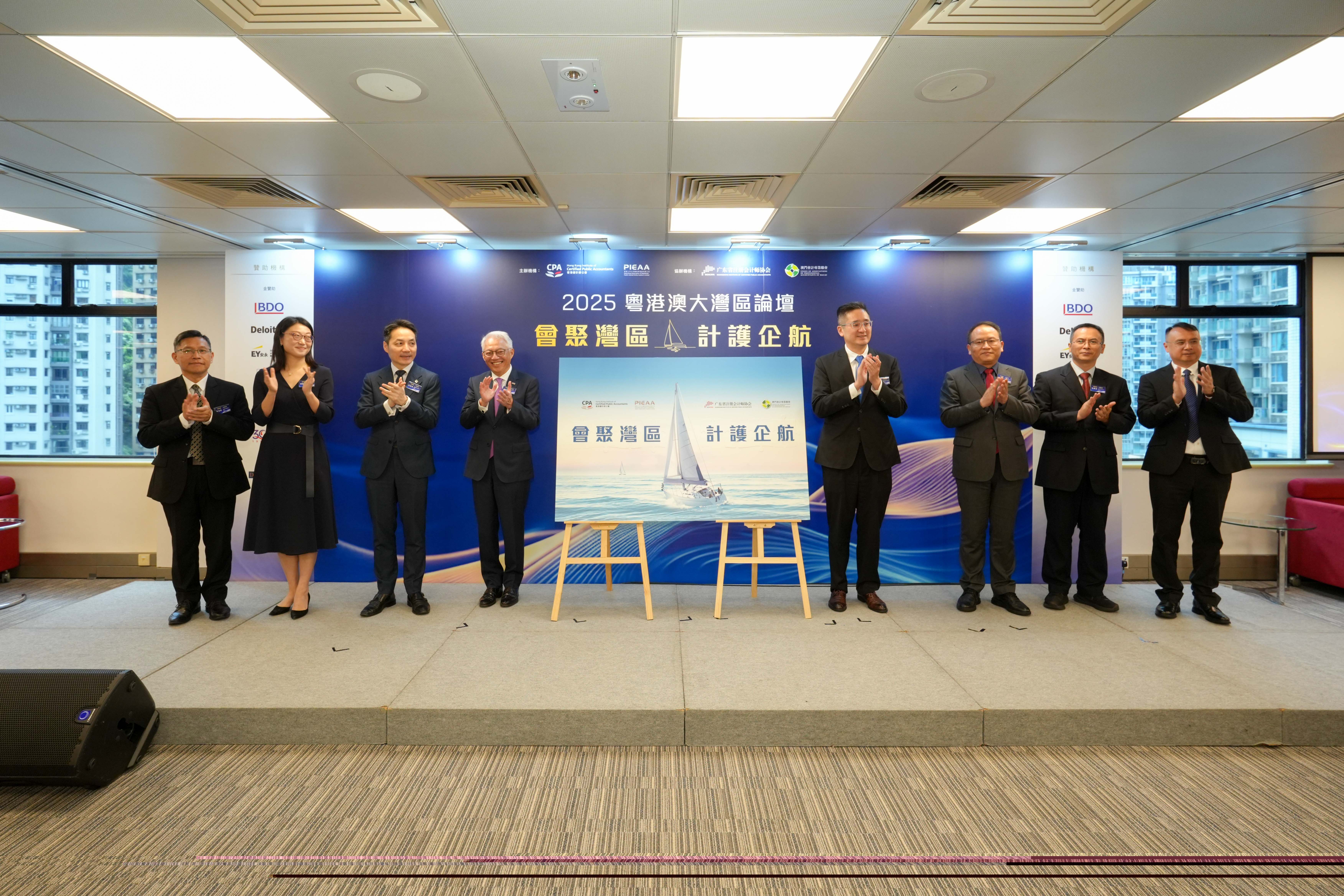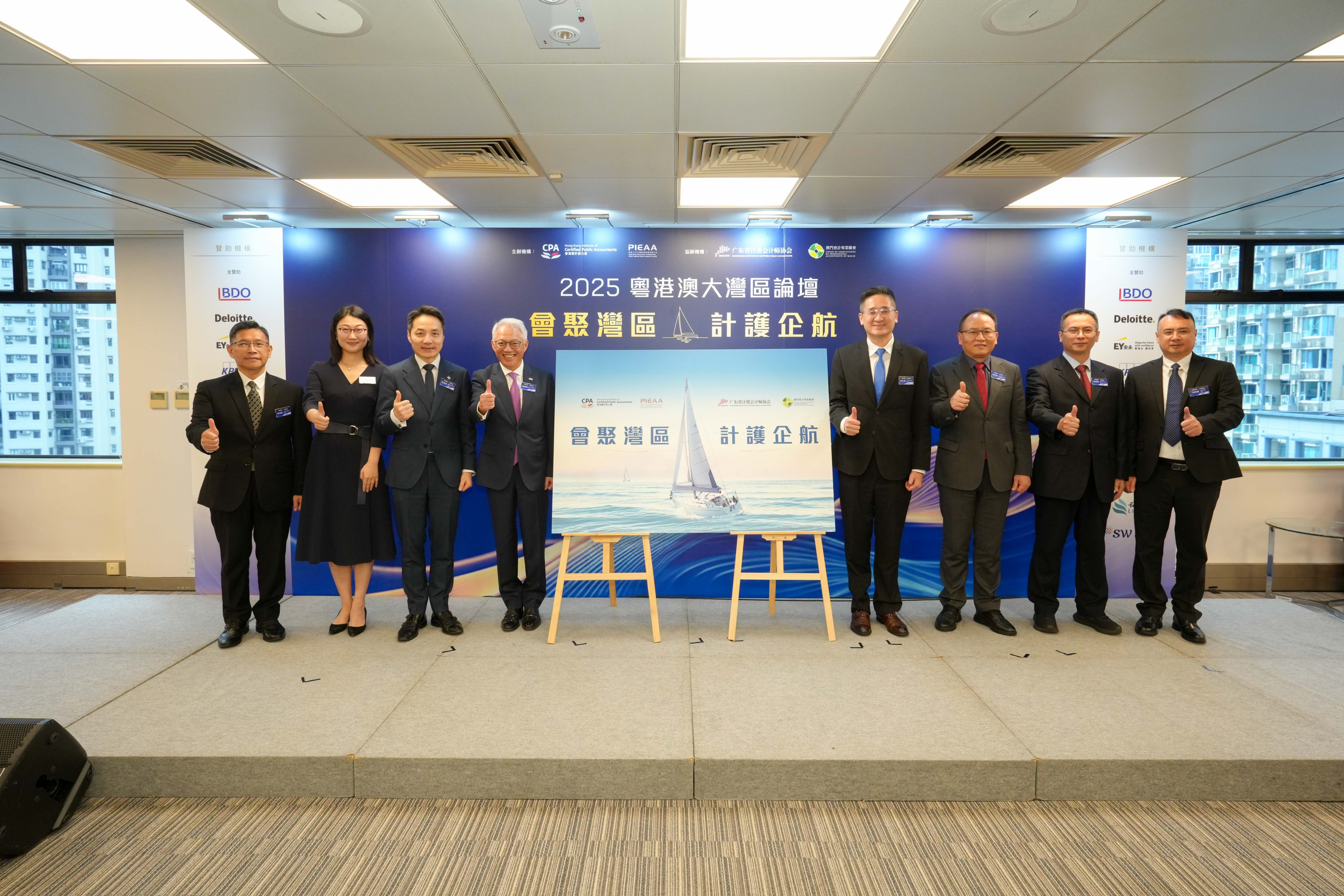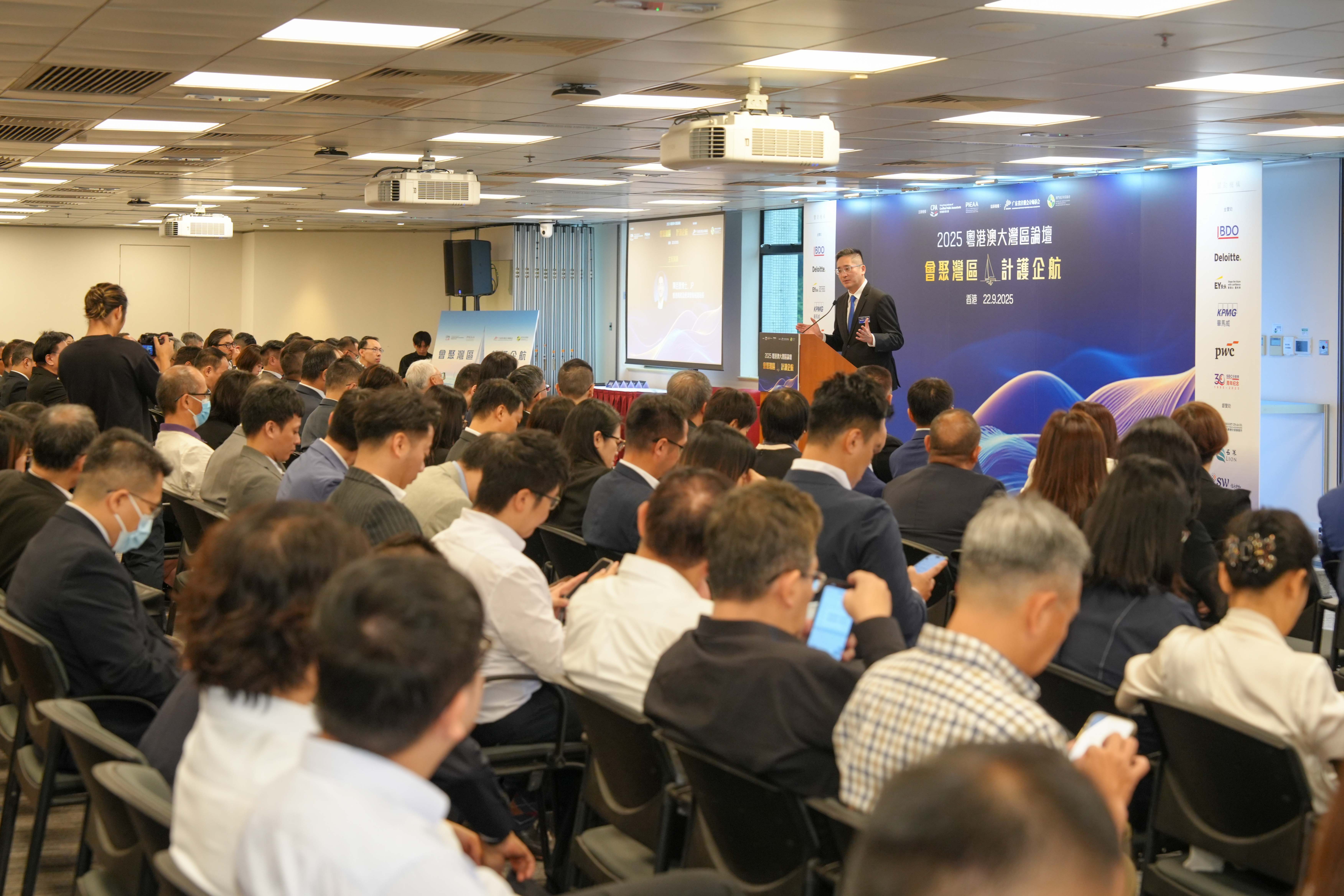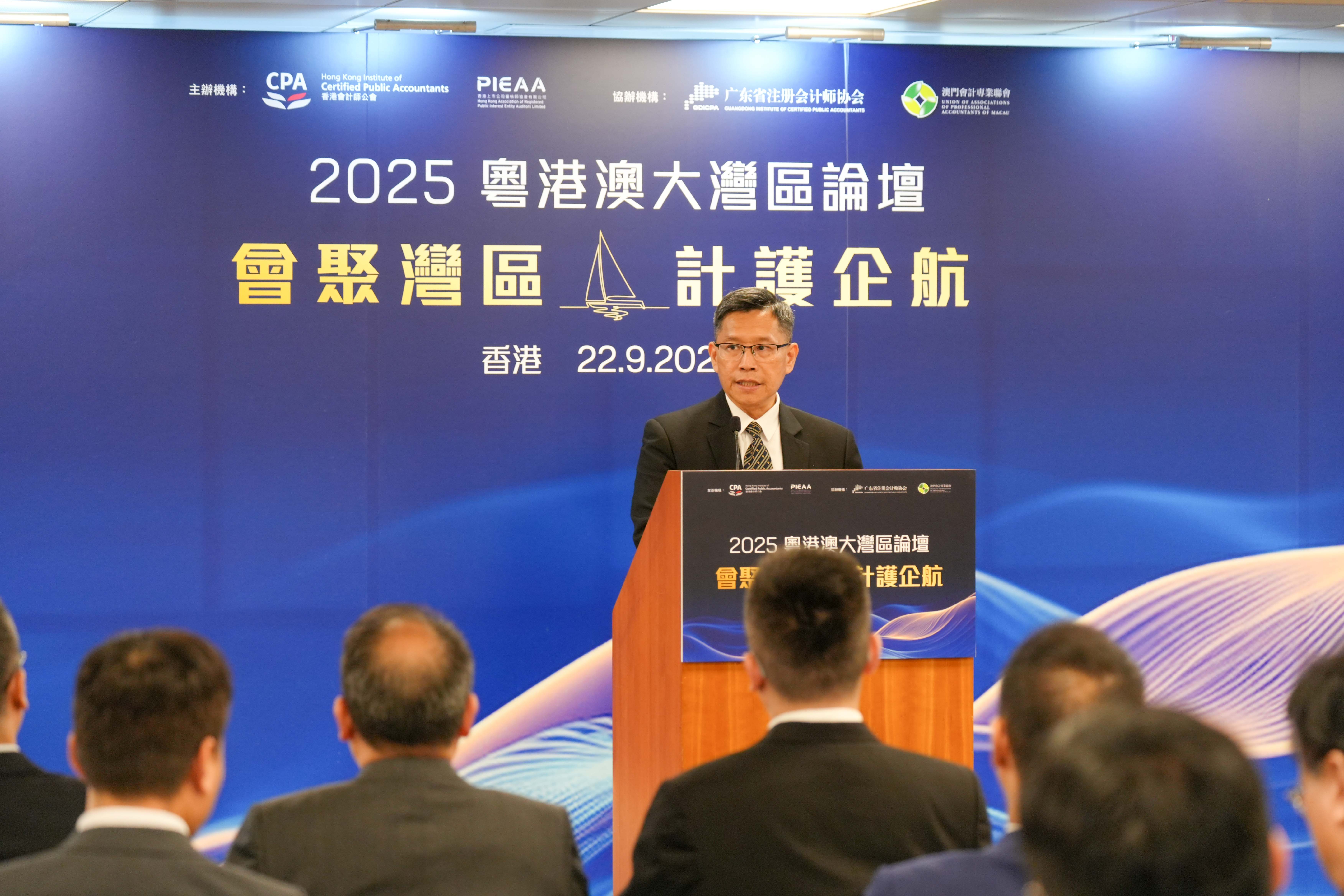 (香港,2025年9月23日) 由香港會計師公會和香港上市公司審核師協會共同主辦、廣東省註冊會計師協會和澳門會計專業聯會協辦的「2025粵港澳大灣區論壇」於9月22日在香港順利舉行。是次論壇圍繞主題「會聚灣區 · 計護企航」,薈萃粵港澳三地會計業界精英和商界領袖,就當下地緣政治與經濟形勢、企業出海投資布局,以及會計專業在服務國家「引進來,走出去」戰略中所發揮的作用等熱門議題,展開深入的探討和交流。論壇吸引三地逾250名嘉賓和會計同業參加,成為行業年度盛事。
