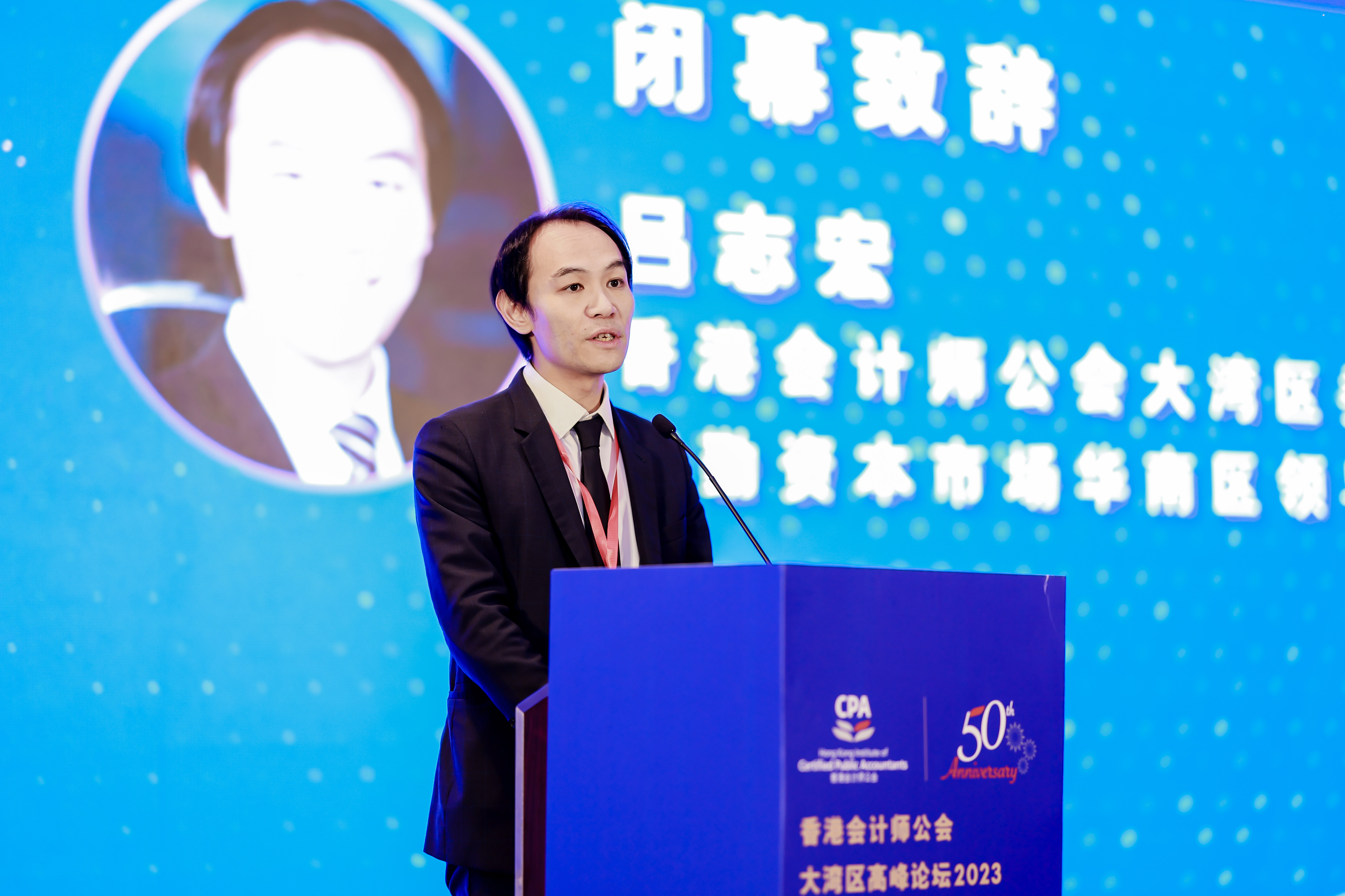 香港会计师公会大湾区委员会主席、德勤资本市场华南区领导合伙人吕志宏先生致闭幕辞,感谢出席的嘉宾、协办机构和支持机构,并提出对未来的展望:「我谨向出席本次高峰论坛的所有同仁、会员表示感谢,同时鼓励你们充分利用这机会,与大湾区业界建立联系,积极探索创新合作模式,拓宽业务合作领域,促进三地会计界高质量深度融合。公会将一如既往,与广东同业紧密沟通,加强交流。继续通过组织实地考察、举办研讨会、论坛等活动,为三地会计师牵线搭桥,创造实务合作机会,推进业界共同进步、发展。」