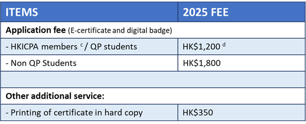 Current HKICPA members and registered QP students are entitled to a discount application fee.