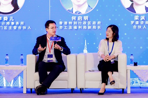在第二場《招賢納士,建設可持續灣區》的專題討論中,由主持人安永會計師事務所香港及澳門區主管合夥人李舜兒女士帶領香港特別行政區政府勞工及福利局副局長何啟明先生、羅盛咨詢合夥人梁沨女士、畢馬威會計師事務所合夥人香港會計師公會副會長梁思傑先生、香港科技大學深港協同創新研究院執行總監高淩雲女士以及李錦記集團集團人力資源高級副總裁張慶中先生,一起討論大灣區人才發展策略。講者分享大灣區各城市人才政策的焦點、展望未來,同時探討粵港澳大灣區如何推動人才流動、實現人才共享及人才在大灣區的可持續發展。