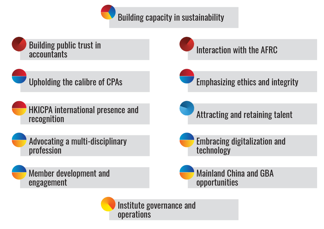 The strategic direction of the last three years was focusing on repositioning of the Institute following the further regulatory reform in 2022.  With the period of transition and evolution having now largely passed it was considered appropriate to realign the strategic themes that shape the Institute’s Strategy reflecting the current market needs and demands of the accounting profession, and articulate our value proposition to members and public at large towards the development of the profession and Hong Kong.