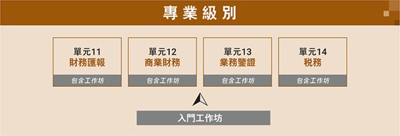 專業級別由四個單元組成;每個單元都有為期一天的工作坊和考試。專業級別旨在讓學生具備初級專業會計師所需的核心領域專業知識和實務技能。學生需要理解相關概念、原理和技術,並具備將其應用於真實專業環境的能力,以及運用專業判斷去評估複雜問題和建議適切的解決方案。這四個單元是: