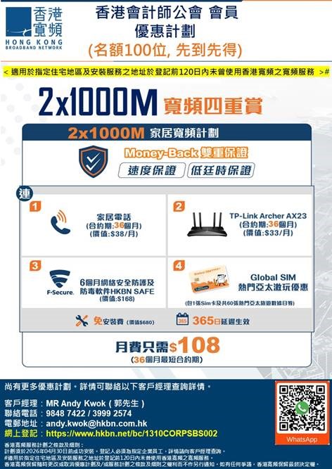 • 2X1000M broadband with Home Telephone and TP-Link Archer AX23 Router monthly fee as low as $108