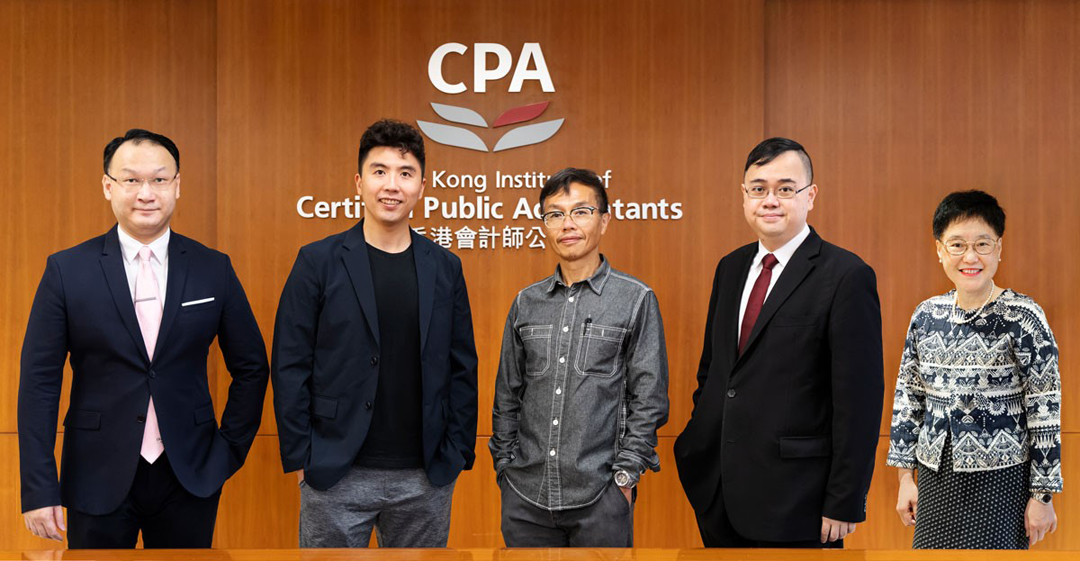 (從左至右)潘永祥會計師事務所合夥人及中小型執業所委員會(SMPC)成員潘俊華;柏雅會計師事務所有限公司董事總經理及SMPC主席鄭皓朗;陳維漢會計師事務所合夥人及SMPC副主席陳維漢;黃龍德會計師事務所有限公司執業董事及SMPC副主席黃俊碩;以及羅思雲羅君美會計師事務所有限公司董事總經理及SMPC成員羅君美。