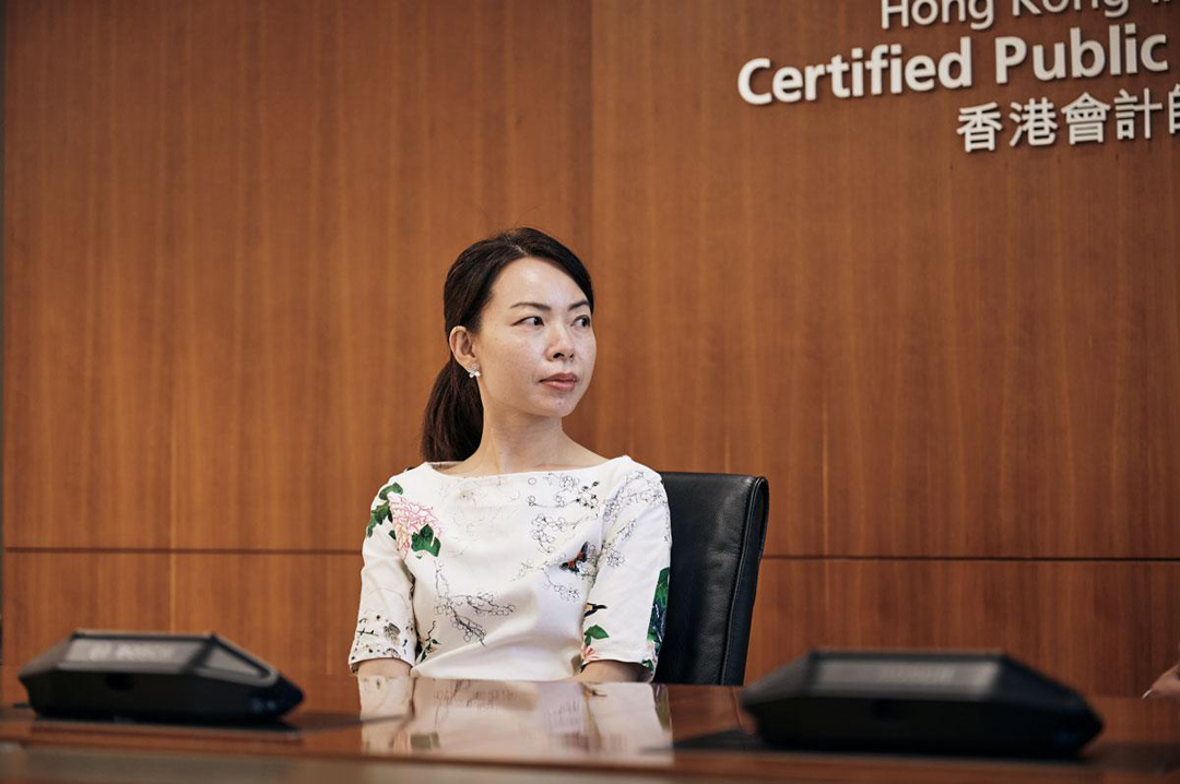 (左起)柯伍陳律師事務所資深合夥人伍兆榮律師、富事高諮詢有限公司資深常務董事周偉成、香港會計師公會會長江智蛟、信永中和諮詢專項服務有限公司合夥人簡立祈、安邁顧問有限公司董事總經理黃詠詩、安永會計師事務所戰略與交易諮詢合夥人吳宓